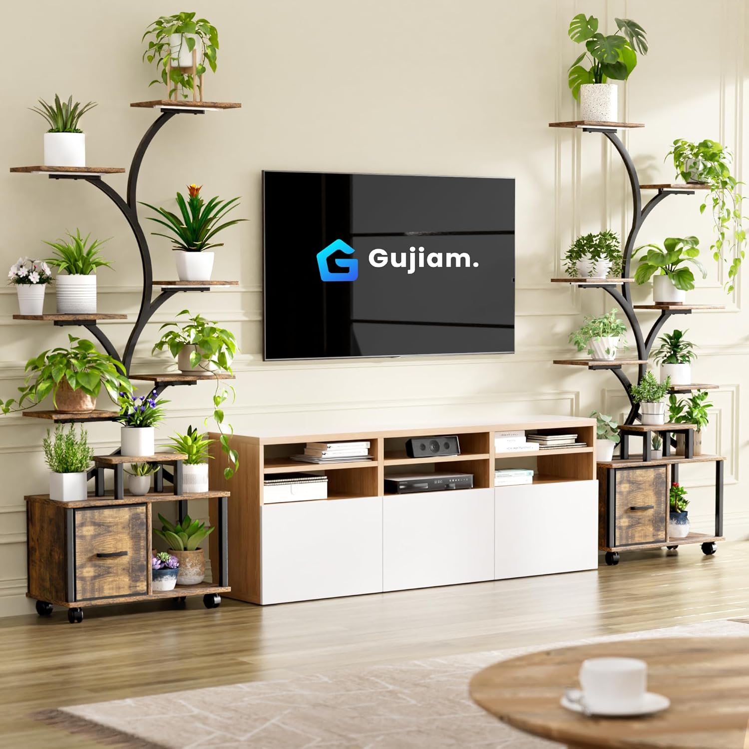 - Smart safety design includes an anti-tip mechanism and integrated wall attachment to minimize tipping risks with tall plants.