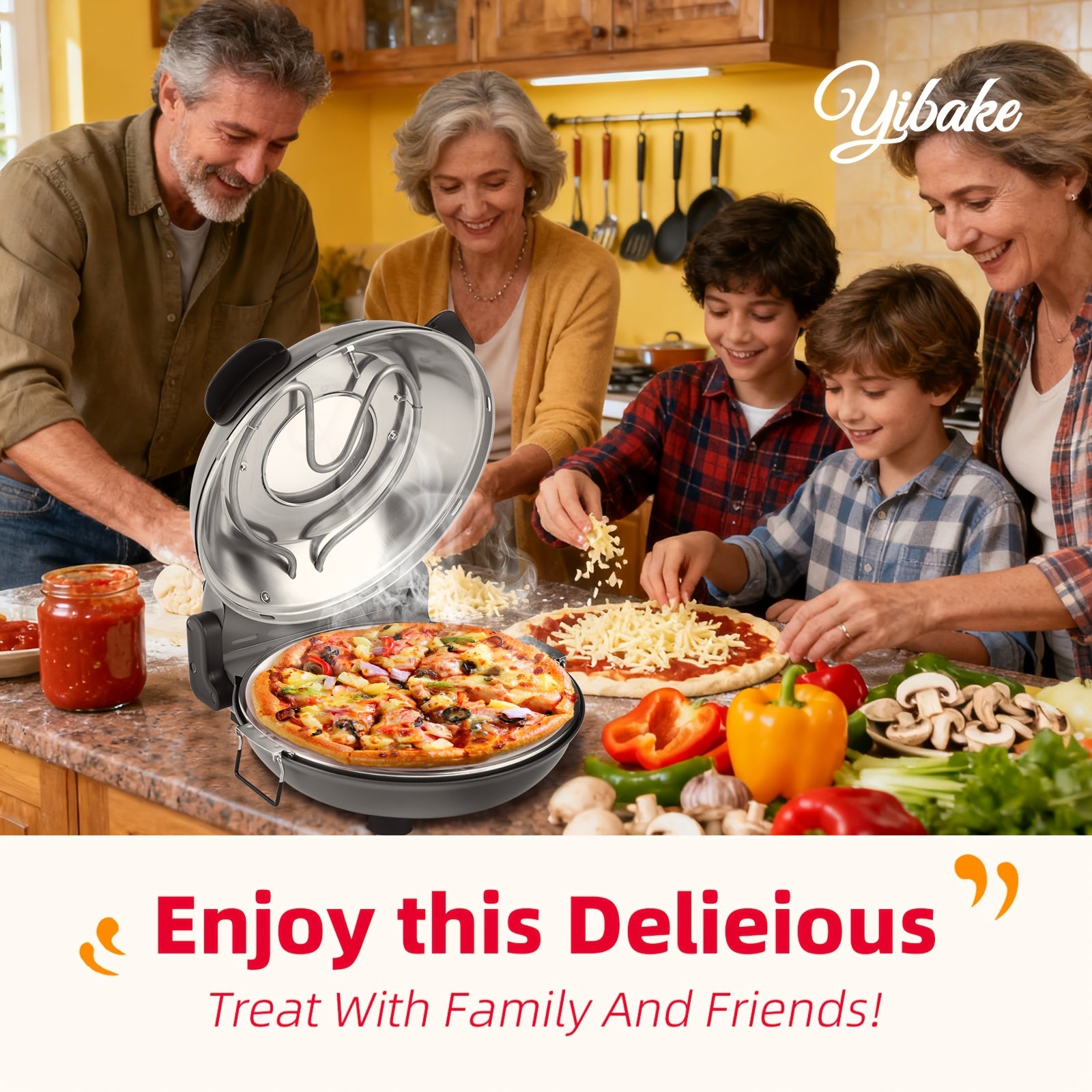 Electric Pizza Oven Round Indoor Countertop Dual Knob 1200W