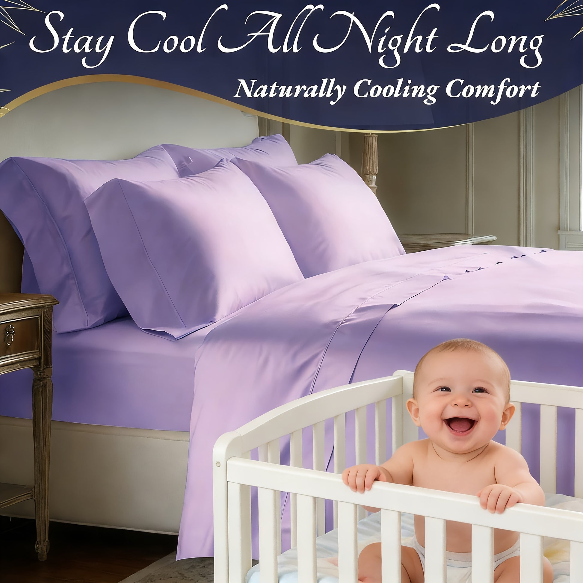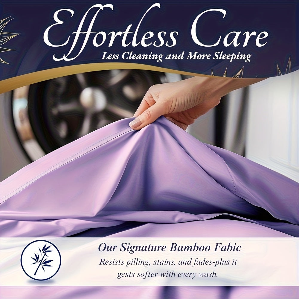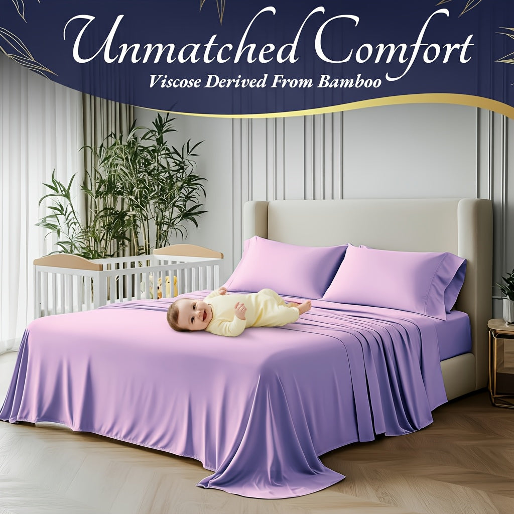 4pcs Bamboo Cooling Bedding - Extra Deep Pocket Breathable And Cooling - Suitable for Hot Sleepers And Sweats, Children Pillowcases, Flat Sheet And Fitted Sheet - A Perfect Gift for Family, Queen And King Sizes, Next Day Deli