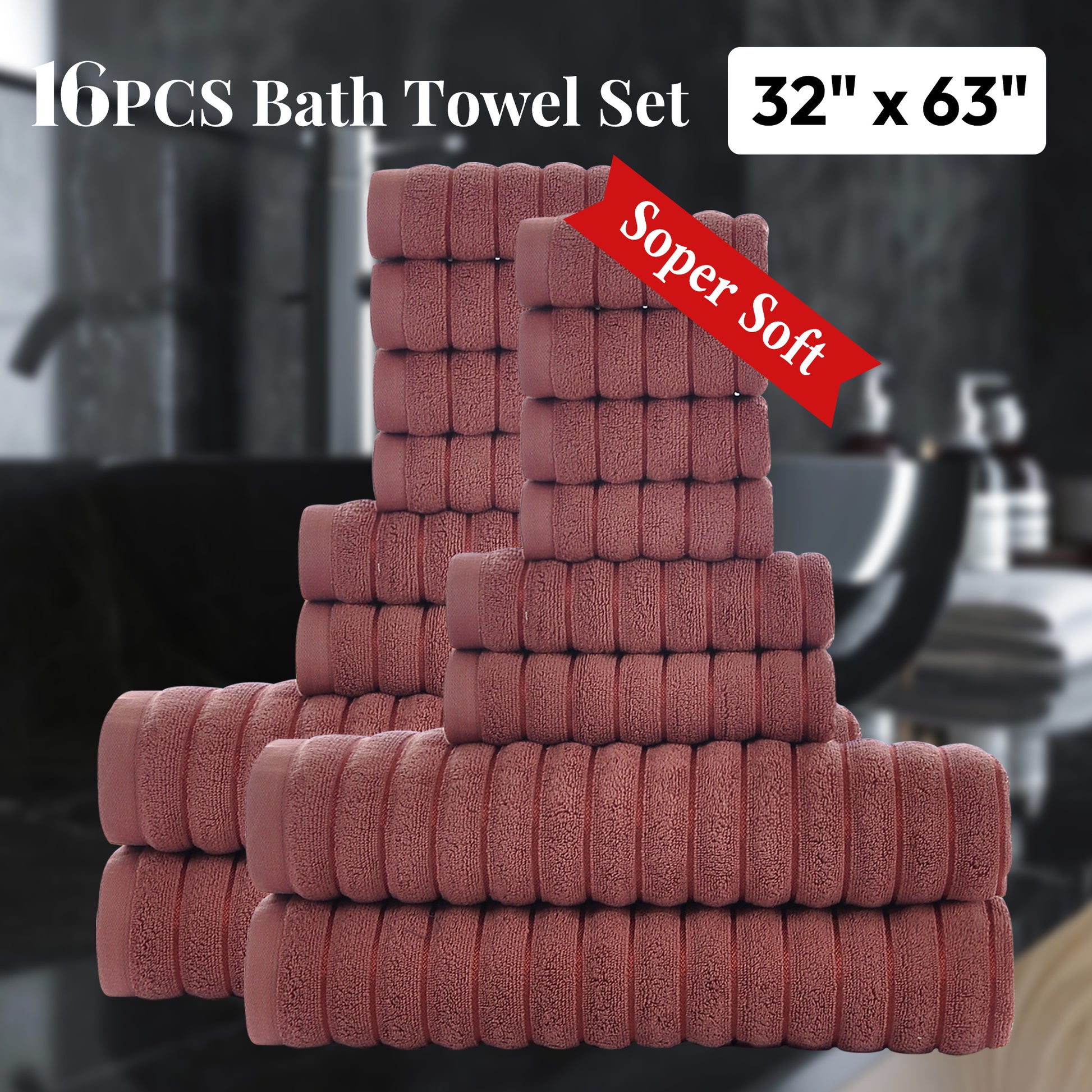 8 Pcs 16 Pcs 24 Pcs Oversized Jumbo Bath Towel Set 32X63 Extra Large Cotton Highly Absorbent Includes Luxury Bath Towels Hand Towels and Washcloths
