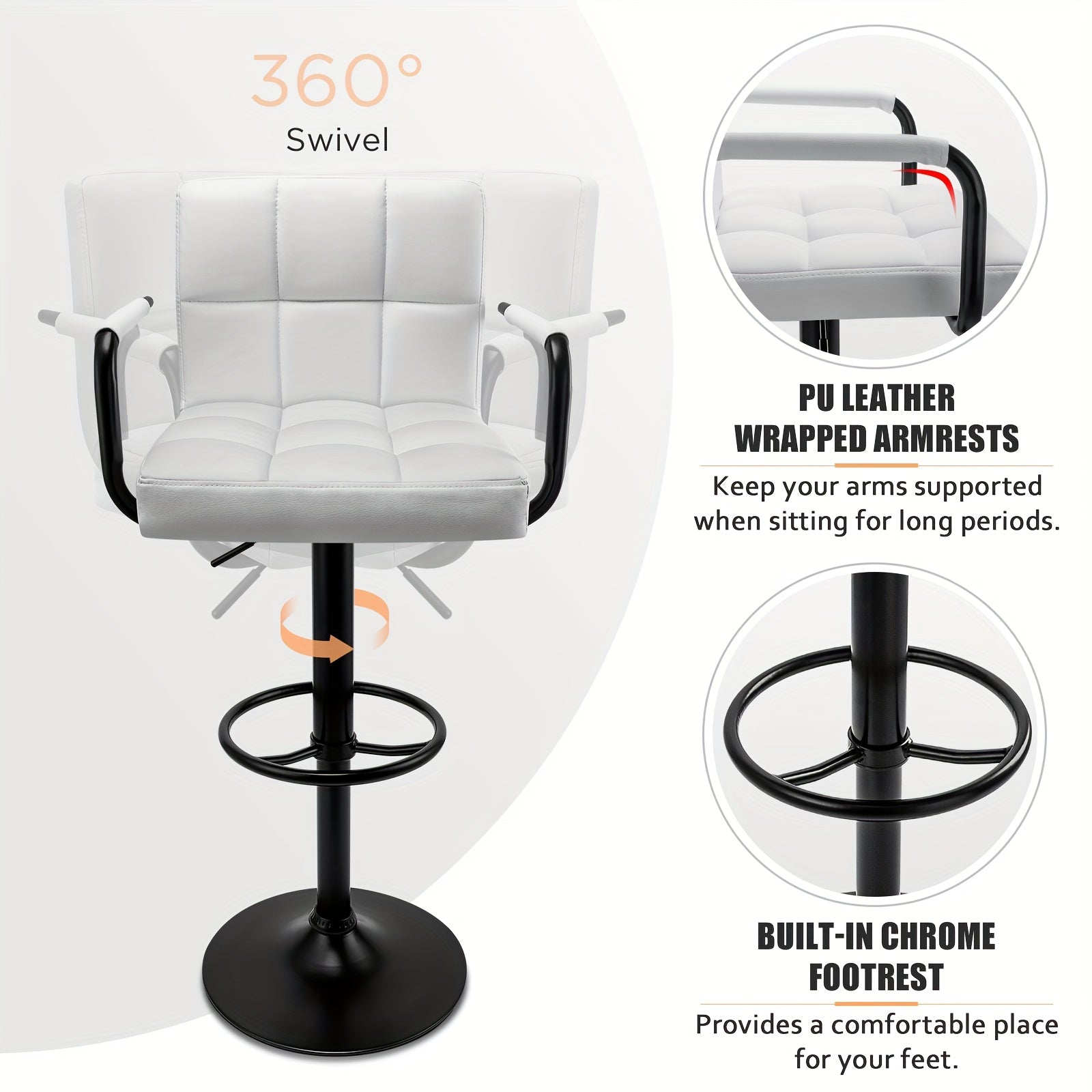 - Swivel Feature: Enjoy the convenience of a 360-degree swivel function that makes it easy to engage in conversation without having to reposition your stool.