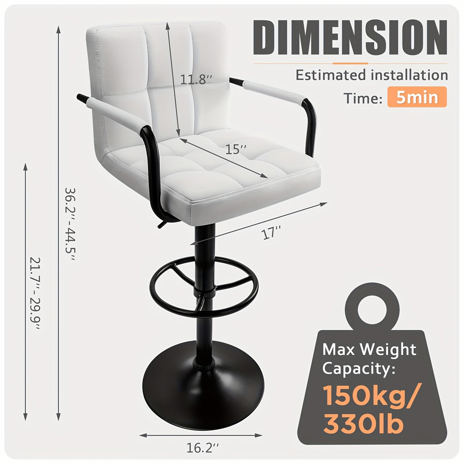 - Adjustable Height: With a gas-lift mechanism, you can easily adjust the height of the stools to suit your needs, whether you’re sitting at a bar or a high-top table.