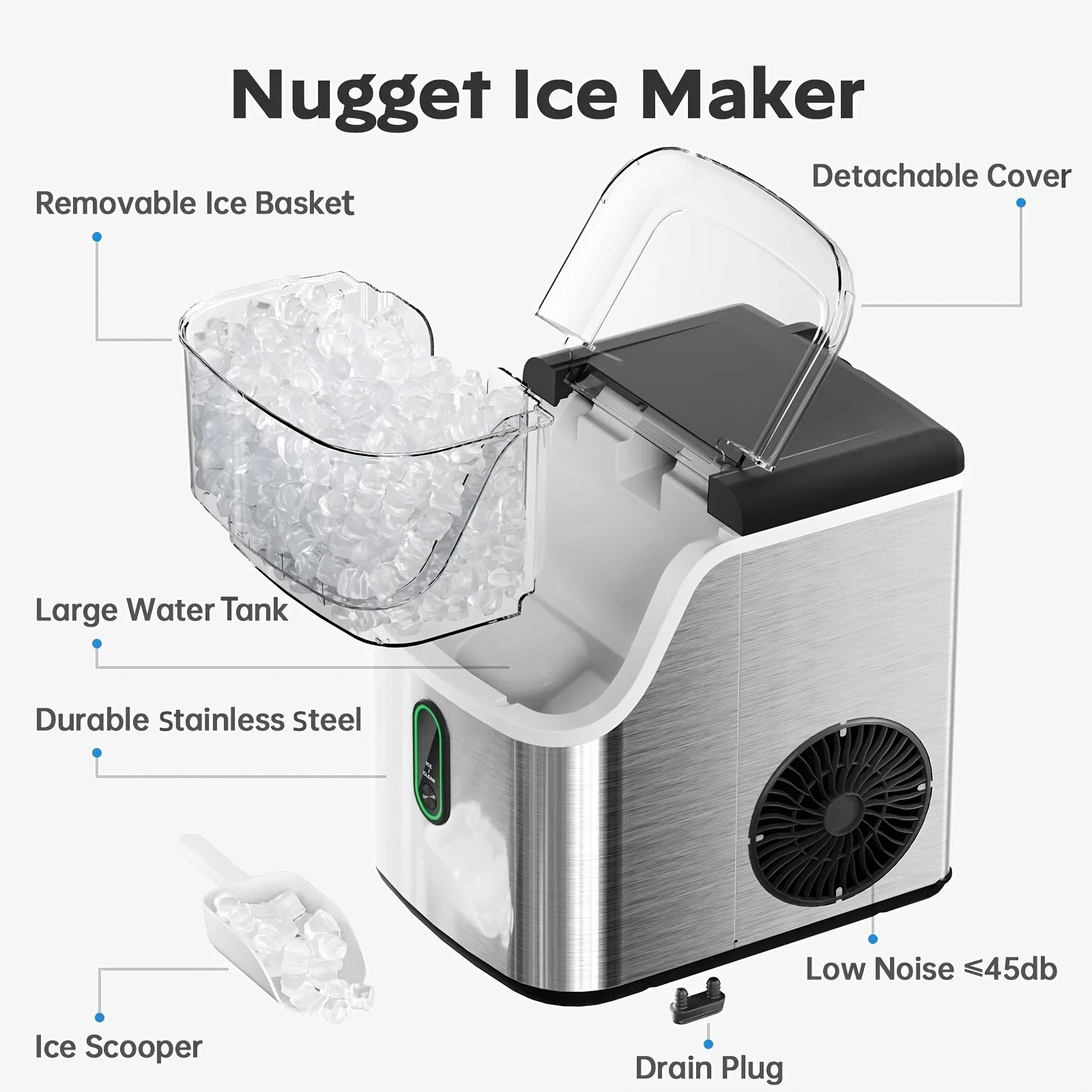 - You can switch between nugget and bullet ice styles to suit drinks, chillers, or presentations, making every gathering feel premium.