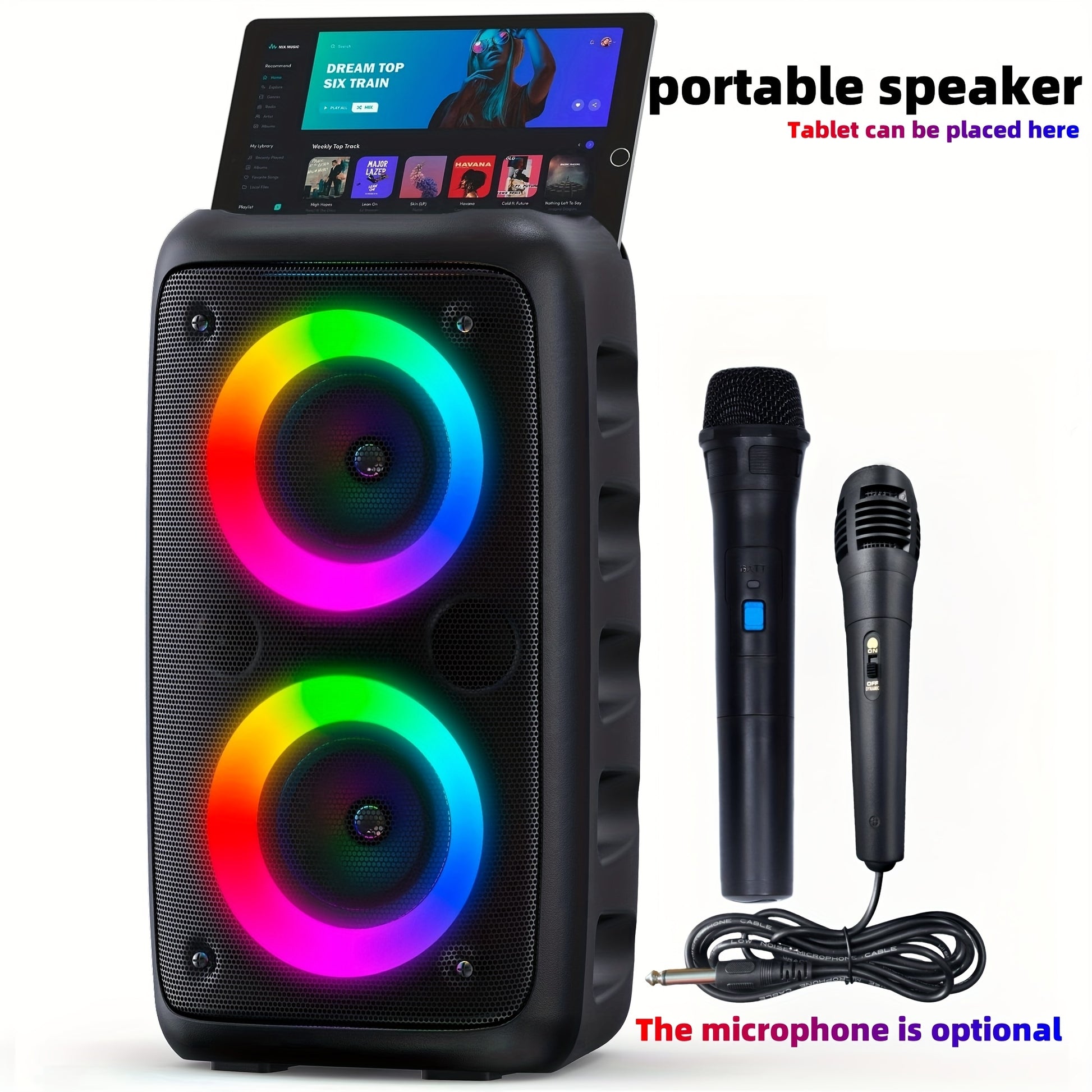 GDHENGYIN Karaoke Machine With Wireless Microphone And LED Lights
