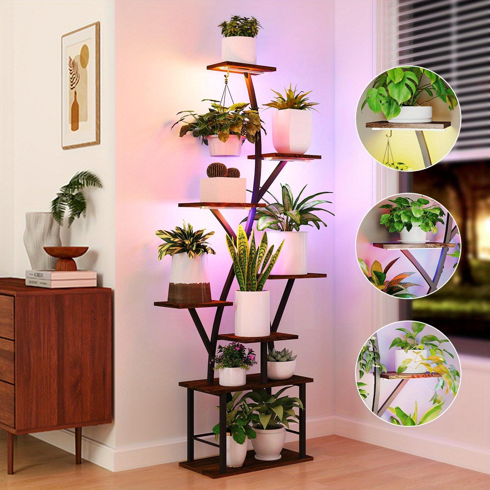 8-Tier Indoor Plant Stand With USB Grow Lights Wood Frame