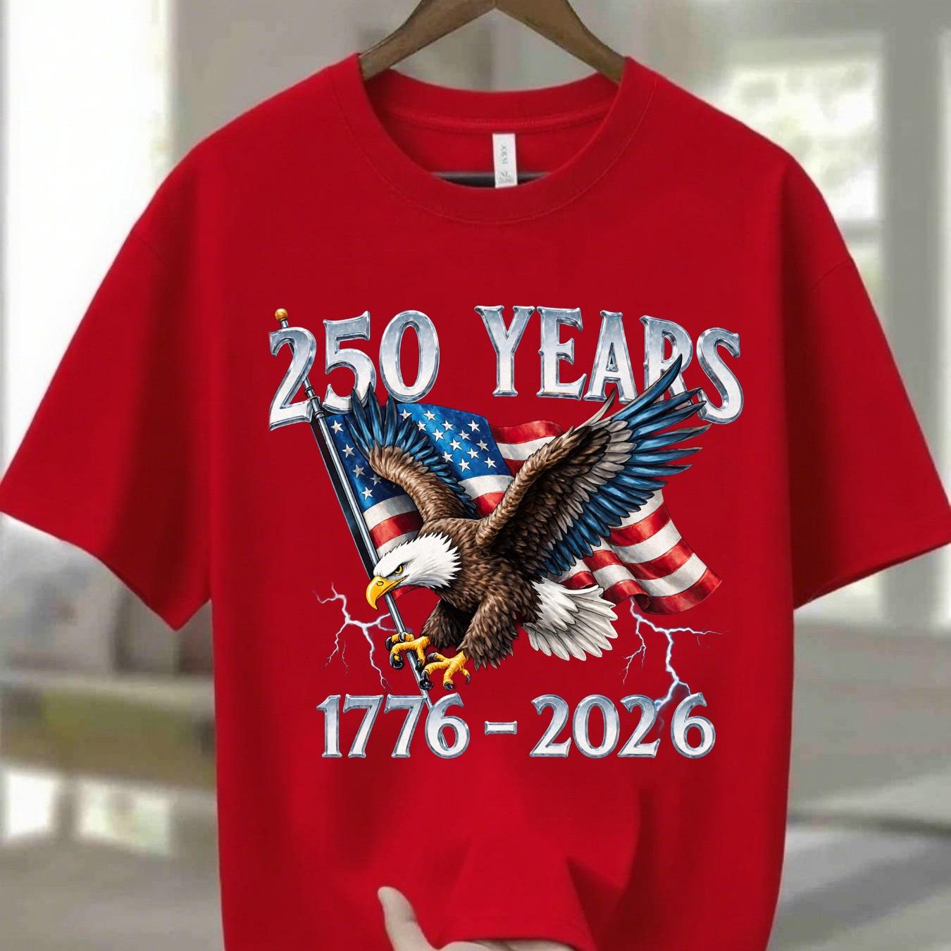Navy Blue 100% Men's Round Neck T-Shirt with Eagle Pattern| 250 Years 1776- 2026 United States Flag Design, Ideal for Thanksgiving, Christmas, Summer, and Casual Attire, Men's Casual Comfortable T-Shirt