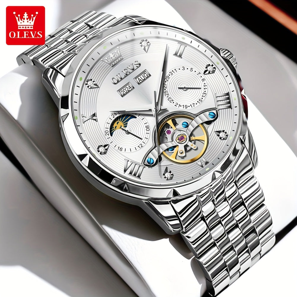 OLEVS Self Winding Stainless Steel Chronograph Watch Date Luminous Hands