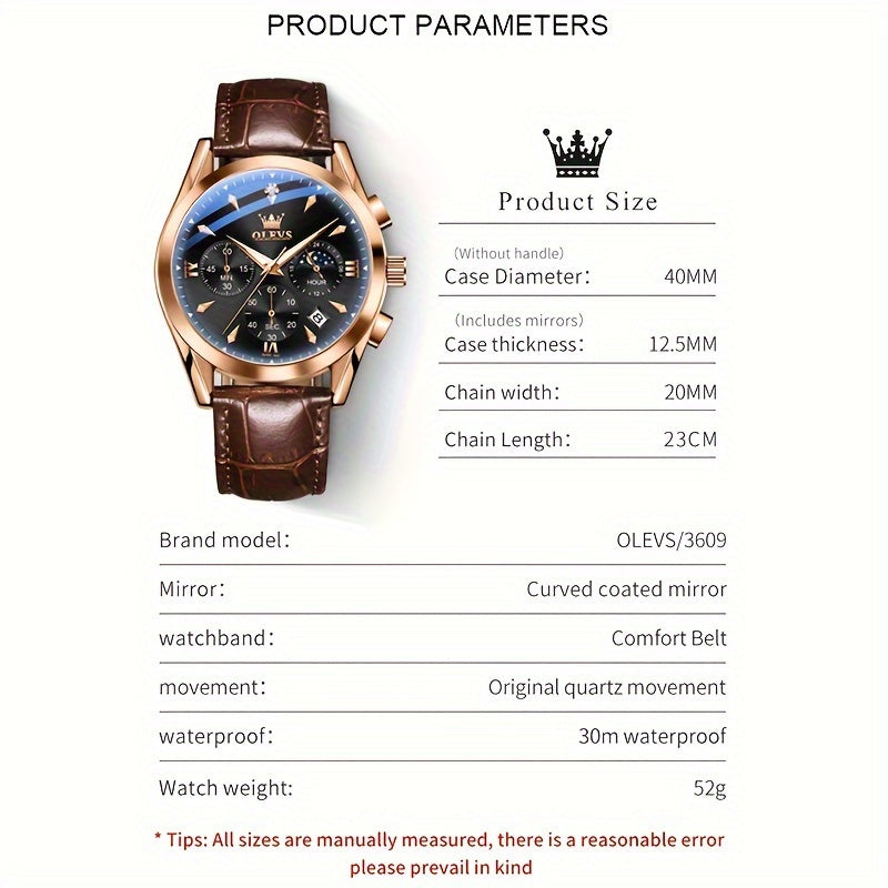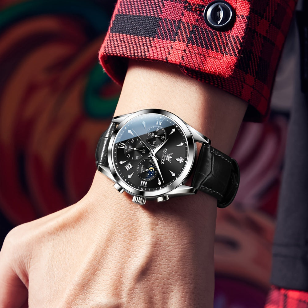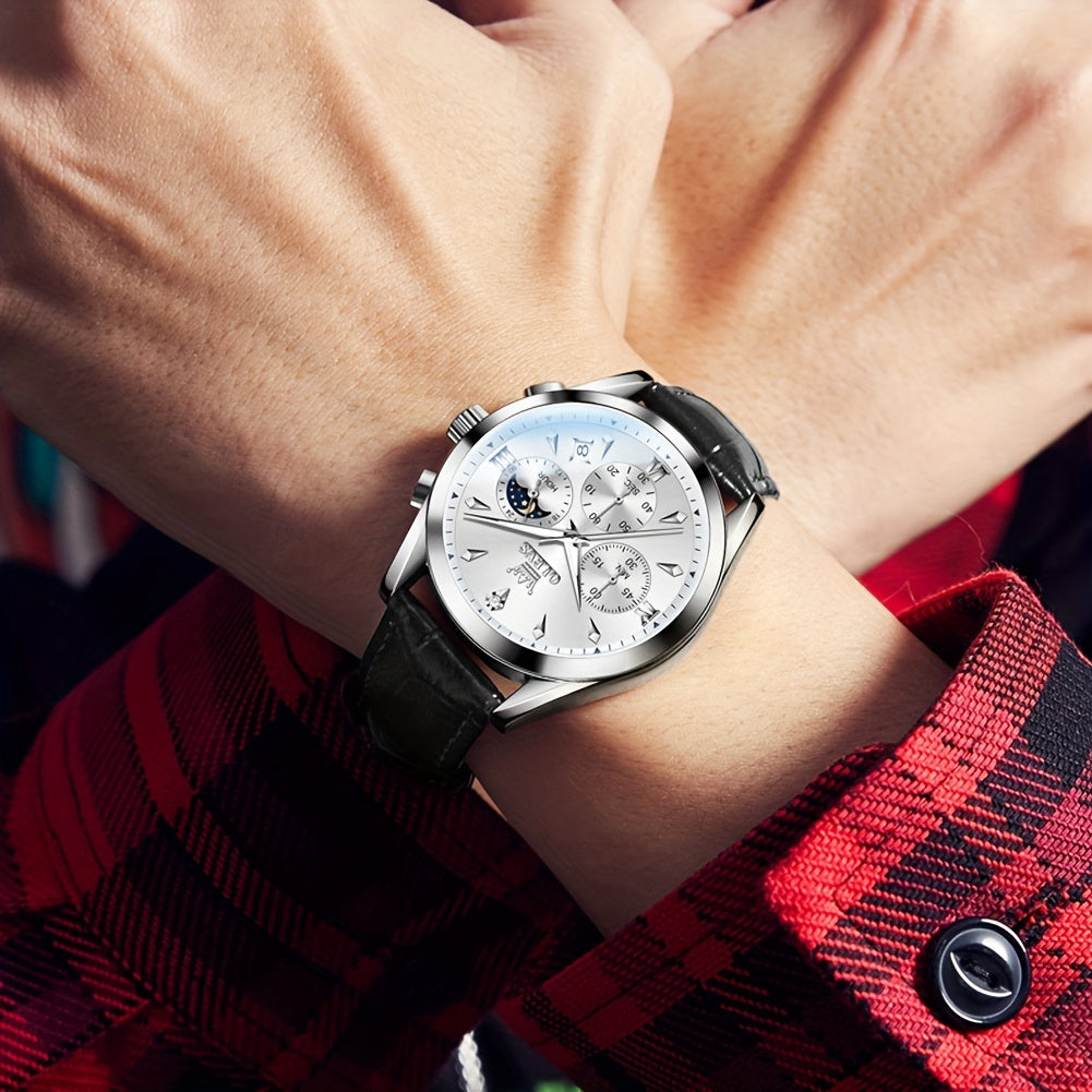 Elevate your everyday with a sleek OLEVS analog quartz chronograph featuring a moon-phase design for style and reliable performance.